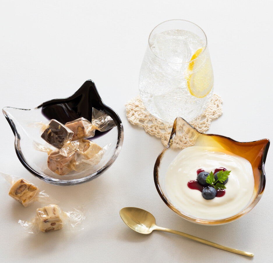 From the beloved Coconeco collection by Japanese brand Aderia, we’re thrilled to introduce these charming cat face bowls, each hand-blown by skilled artisans in Japan. Every bowl has a unique pattern, making each piece one of a kind. This adorable white and brown cat face bowl is a firm favorite!