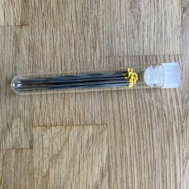 They come with the little push caps, making them brilliant for storing your needles ready for next time you need to use them. Each tube can take up to around 15 needles.