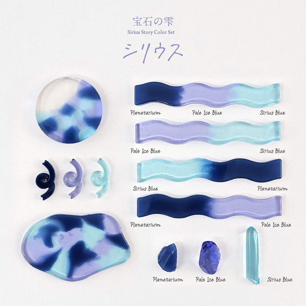Part of Padico’s seasonal Story Colour collection, the Sirius set draws inspiration from the brightest star in the night sky. The carefully balanced palette combines cool luminous shades and deep space tones, allowing resin artists to create designs that feel calm, radiant and full of winter magic.