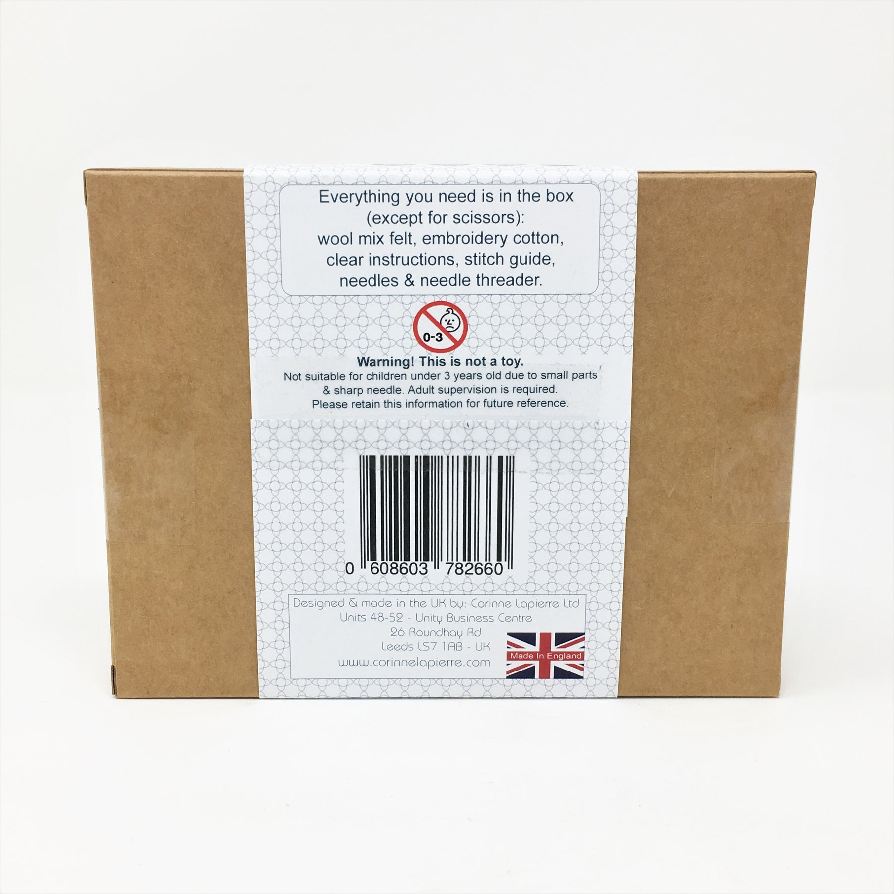 All of Corinne's kits include everything you need (with the exception of scissors!) to realise the project including soft wool mix felt, DMC embroidery thread and a needle. Full scale templates and instructions are very clear and we give you a stitch guide for extra support.