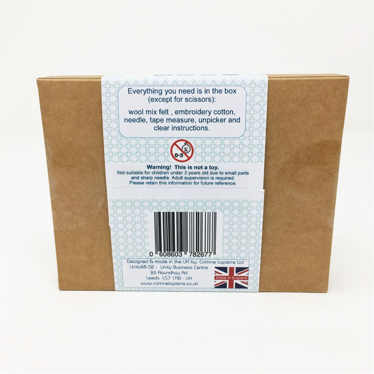All Corinne's kits include everything you need (with the exception of scissors!) to realise the project including soft wool mix felt, DMC embroidery thread, a needle and a button.
